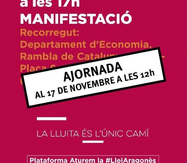 Malauradament hem d’informar que la Plataforma contra la Llei Aragonès, llei que pretén privatitzar fins a 250 serveis públics bàsics, cosa que suposarà l’atac més greu contra els seveis públics de la història, ha decidit… Cancel·lada Manifestació dissabte 19 d’octubre