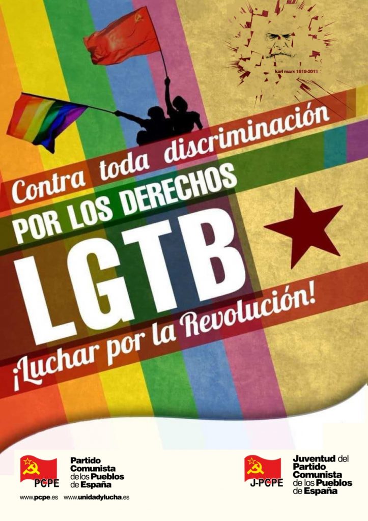 Este día 28 de junio se celebra el día del Orgullo LGBTI. El PCPE y su juventud participan en esta maniestación siendo consecuente con su papel como vanguardia dela clase obrera, otorgándole el carácter científico a sus anhelos para llevarlos a buen término en una nueva sociedad socialista-comunista. En este sentido, declaramos: