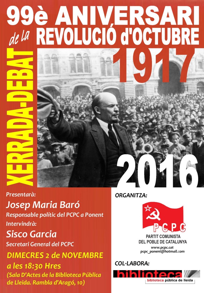 El passat 2 de Novembre el PCPC va organitzar a Lleida un acte a la Biblioteca Pública d’anàlisi i reflexió sobre el que va suposar la Revolució Soviètica per a la història de la humanitat.