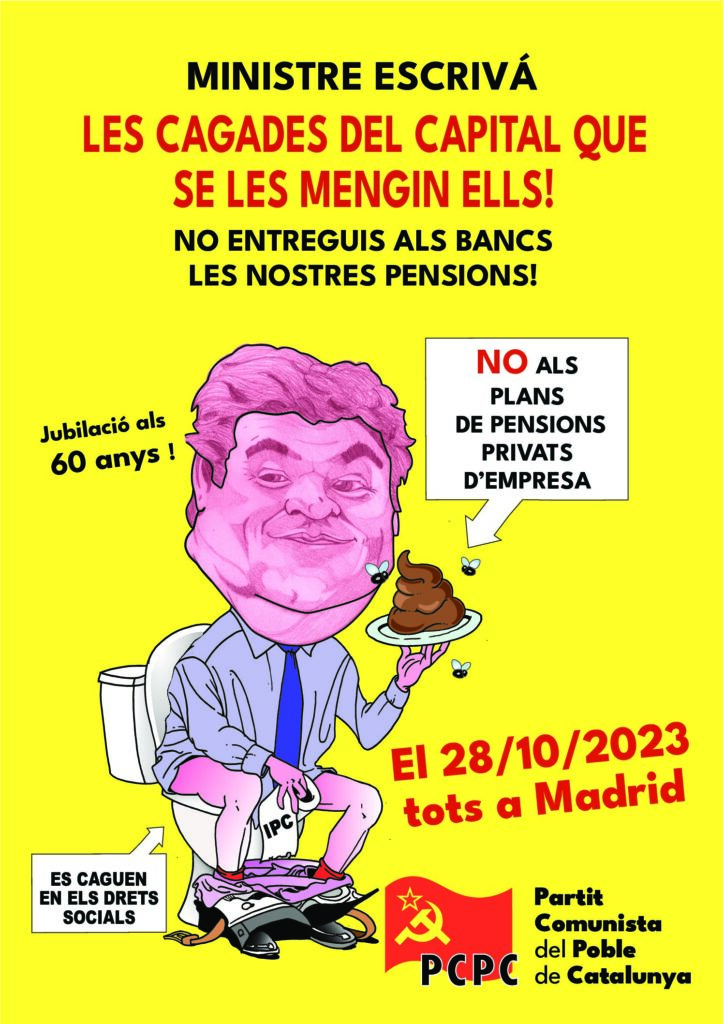 Aquest dilluns 23 d’octubre a les 10h davant del Banc d’Espanya de Plaça Universitat de Barcelona, mobilització en defensa del sistema de pensions públiques, com cada dilluns, però aquesta vegada escalfant motors per la mobilització estatal del dissabte 28 a Madrid. Màxima difusió i suport a aquesta lluita. La lluita és avui per les pensions […]