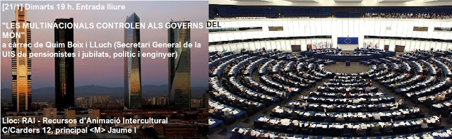 Des del Partit Comunista del Poble de Catalunya us convidem a assistir el proper dimarts 21 a les 19h, a Barcelona, a aquesta xerrada-debat: DE COM LES MULTINACIONALS CONTROLEN ALS GOVERNS DEL MÓN amb Quim Boix i LLuch (Secretari General de la UIS de pensionistes i jubilats L’acte tindrà lloc al RAI- Recursos d’Animació Intercultural, C/Carders […]