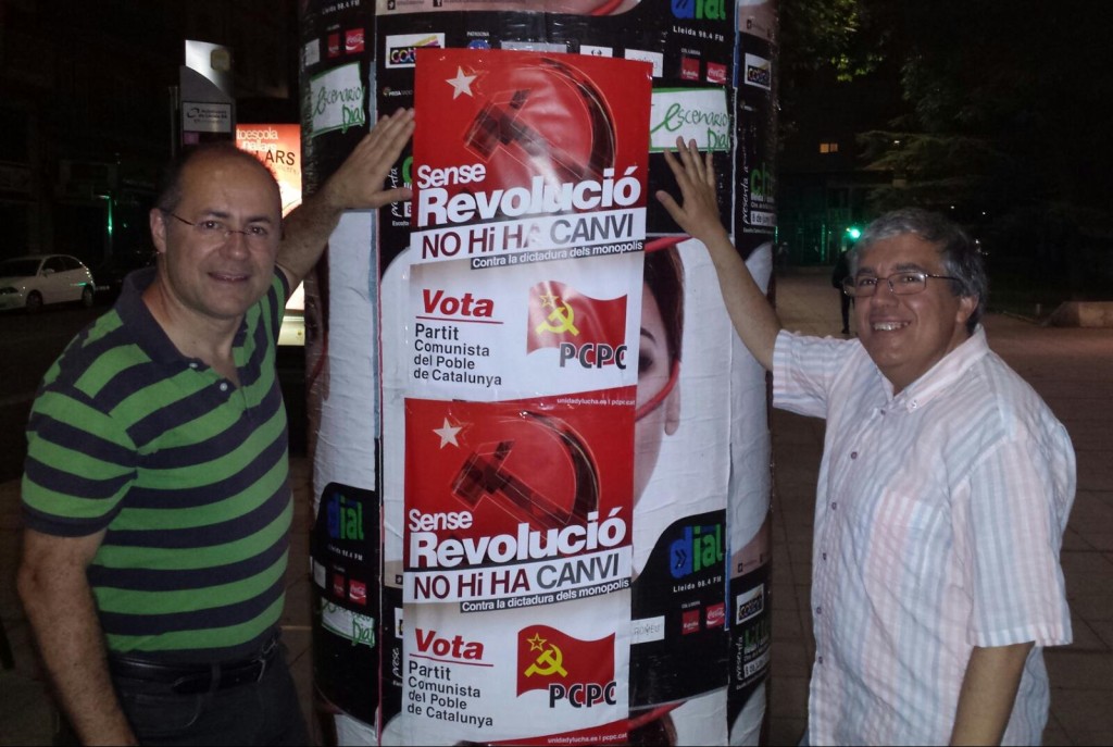 El Partit Comunista del Poble de Catalunya (PCPC) va iniciar a la mitjanit la seva campanya a la Plaça Clot de les Granotes fent la primera enganxada de cartells.