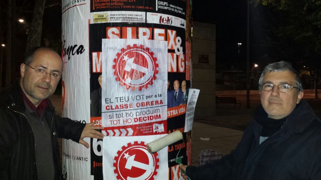 El Partit Comunista del Poble de Catalunya va iniciar a la mitjanit de Dijous, la campanya electoral amb una enganxada de cartells.