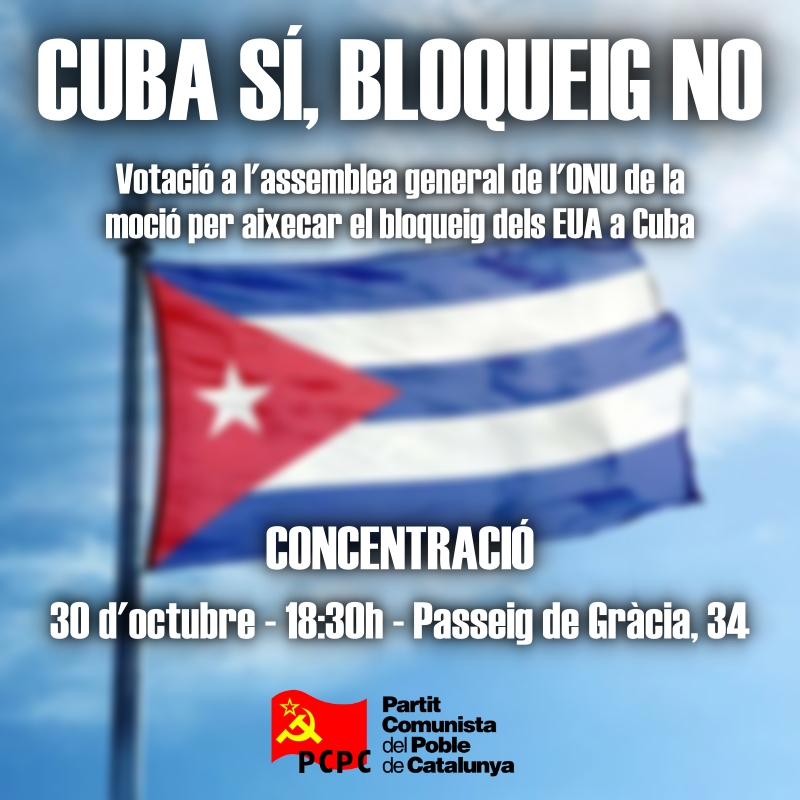 Des del Partit Comunista del Poble de Catalunya (PCPC) fem una crida a tota la classe treballadora, als moviments solidaris i al conjunt del poble català a mobilitzar-nos i mostrar el nostre suport a Cuba socialista.