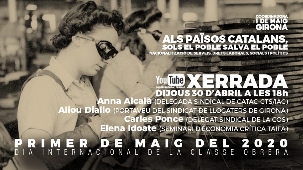 1r de maig: Als Països Catalans, sols el poble salva el poble. Nacionalització de serveis, drets laborals, socials i polítics.