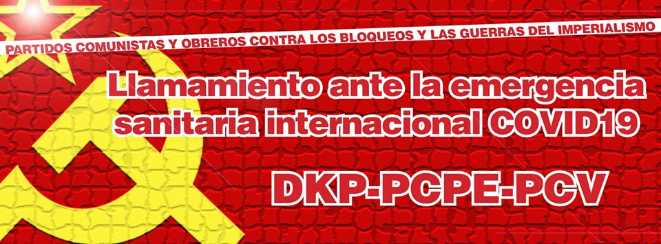 PARTIDO COMUNISTA ALEMAN (DKP) – PARTIDO COMUNISTA DE LOS PUEBLOS DE ESPAÑA (PCPE) – PARTIDO COMUNISTA DE VENEZUELA (PCV) LLAMAMIENTO ANTE LA EMERGENCIA SANITARIA INTERNACIONAL Covid-19 PARTIDOS COMUNISTAS Y OBREROS CONTRA LOS BLOQUEOS Y CONTRA… Llamamiento ante la emergencia sanitaria internacional – Covid-19
