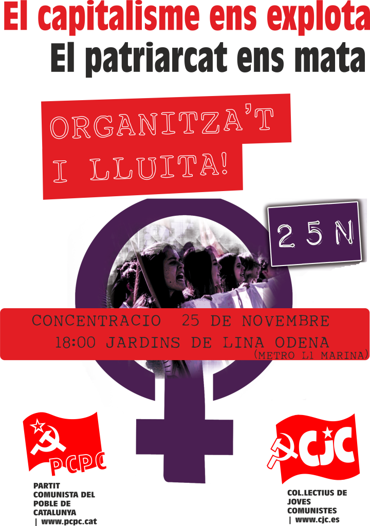 CONCENTRACIÓ: Aquest dimecres, 25 de novembre, ens trobem tots i totes als Jardins de Lina Odena (BCN, Metro L1-Marina) a les 18h. Els i les comunistes de Catalunya ens hem reunit avui aquí per mostrar el nostre rebuig cap a la situació de violència que pateixen la major part de les dones del món. La […]