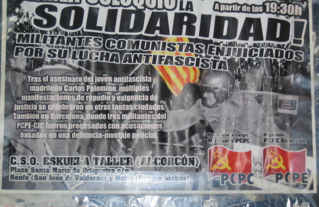 El Partit Comunista del Poble de Catalunya vol mostrar la seva solidaritat amb CSO Eskuela Taller d’Alcorcón, pel desallotjament sofert en les últimes dates i també mostrar el nostre suport amb els detinguts tant en el desallotjament com en la repressió patida durant la concentració contra aquest. Moment en el que es van produir detencions i diversos […]