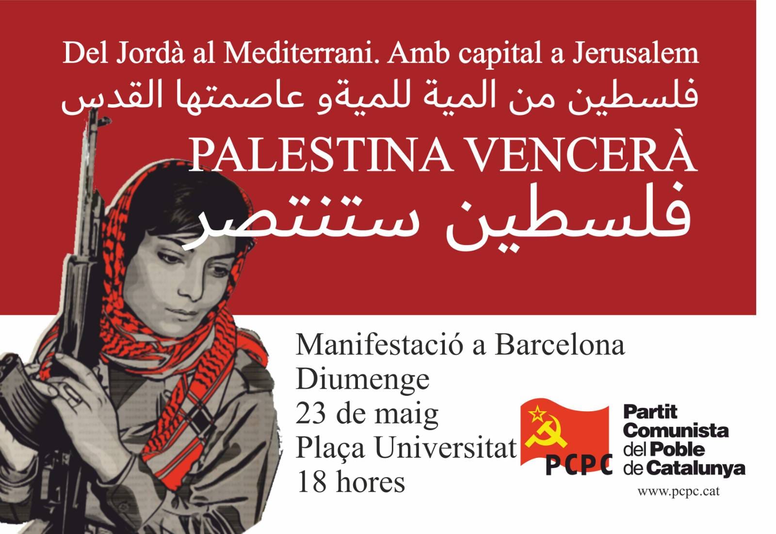 El Partit Comunista del Poble de Catalunya participa de la convocatòria unitària en solidaritat amb Palestina el proper diumenge 23 de maig, a les 18 hores a la Plaça Universitat de Barcelona.Cridem a tota la… MANIFESTACIÓ ATUREM EL GENOCIDI I L’APARTHEID A PALESTINA 23/5