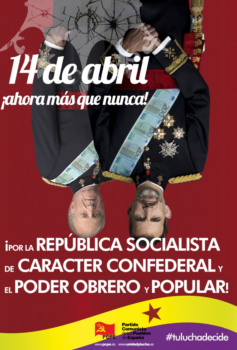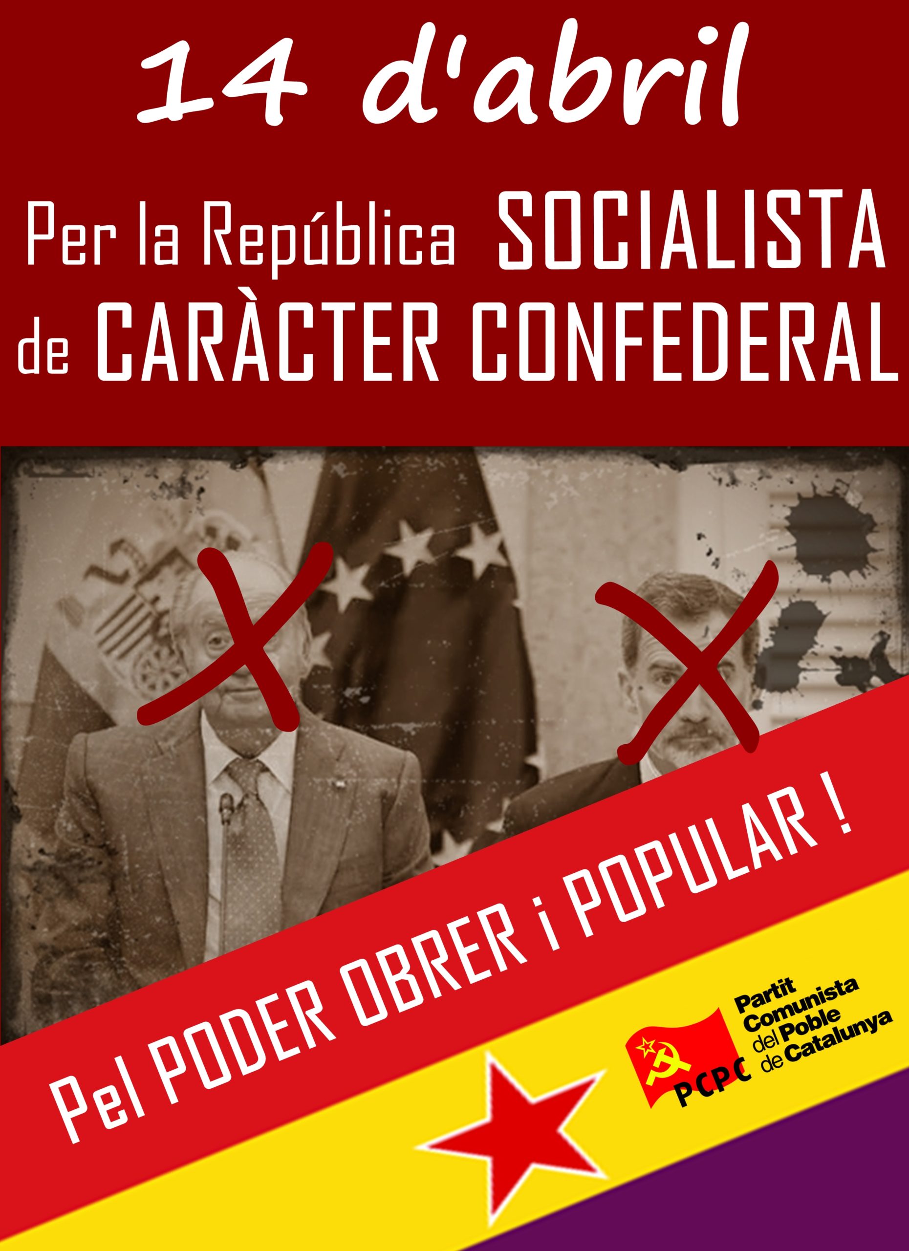 Aquest 14 d’Abril, el PCPC i la seva Joventut (J-PCPC) cridem al conjunt dels treballadors i treballadores i a les classes populars catalanes a manifestar el seu rebuig a la institució monàrquica i el seu… CAP A LA TERCERA REPÚBLICA! REPÚBLICA, SOCIALISME, AUTODETERMINACIÓ!