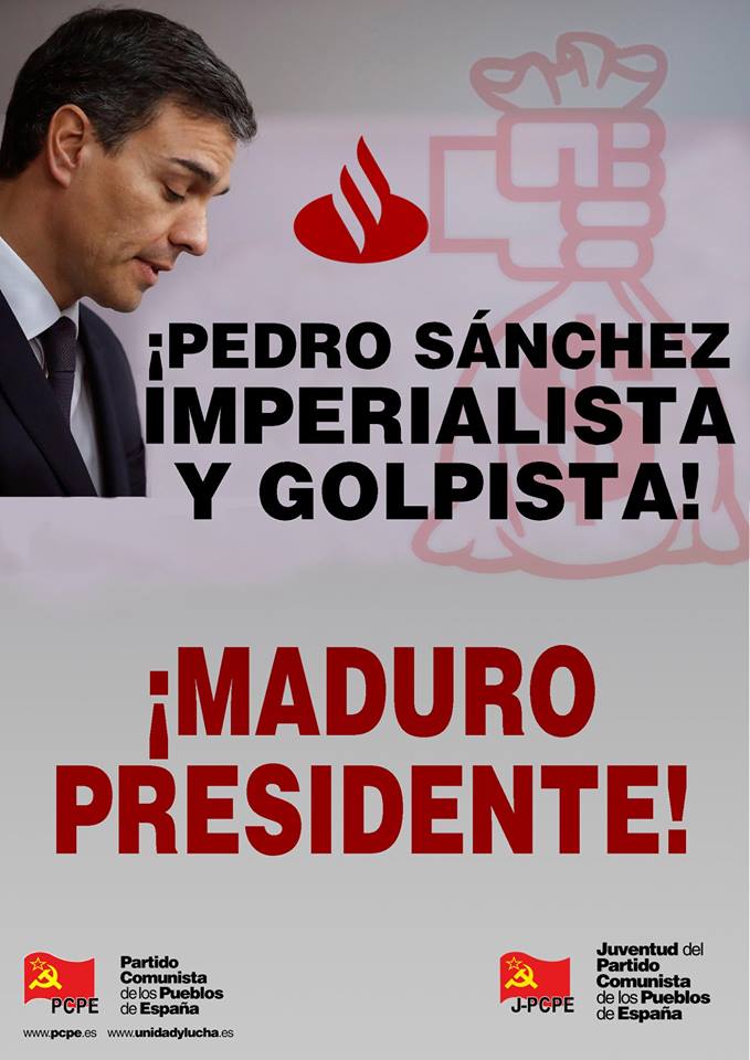 El Partido Comunista de los Pueblos de España denuncia y rechaza frontalmente la maniobra del Gobierno del estado español, encabezado por el Presidente Pedro Sánchez Pérez-Castejón (PSOE), de reconocer en el día de hoy como… Sánchez còmplice del Colpisme Feixista