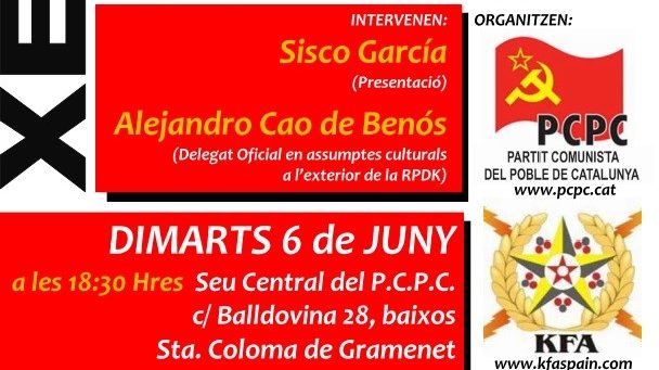 El Partit Comunista del Poble de Catalunya (PCPC) i l’Associació d’Amistat amb Corea (KFA) vam organitzar el passat 6 de Juny una xerrada que portava com a títol “Corea del Nord davant l’amenaça imperialista”.