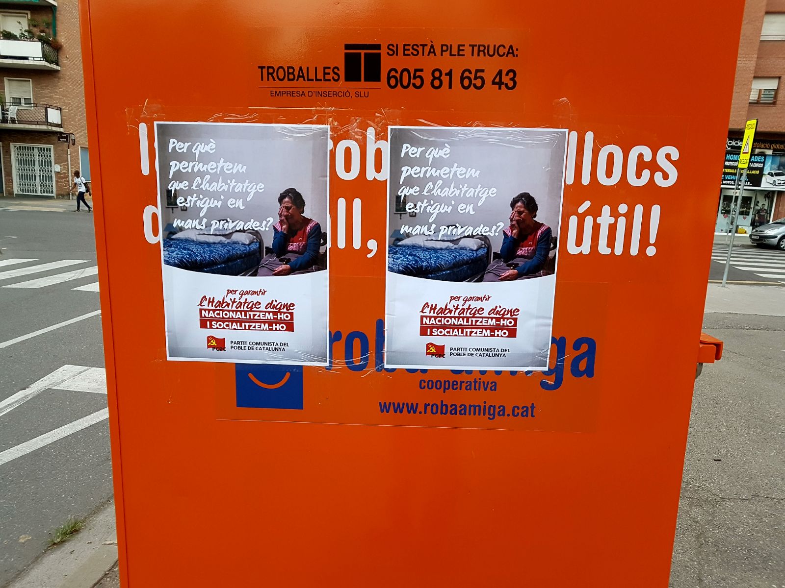 El PCPC Ponent aquest mes de Juliol hem estat als barris de Cappont, Balafia i Mangraners enganxant cartells i repartint díptics, en el context de la campanya del «Per què?». Focalitzada aquest mes en l’habitatge.