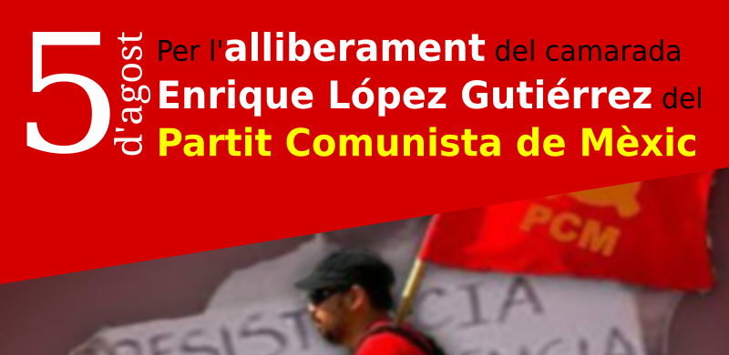 Aquest proper dimecres, 5 d’agost, els i les comunistes convoquem una concentració per demanar l’alliberament del camarada del Partido Comunista de México, Enrique López Gutiérrez, segrestat recentment. Ens trobarem davant del Consolat de Mèxic a Barcelona, a les 12h. La repressió contra les mobilitzacions obreres i populars a Mèxic és una constant del govern d’Enrique Peña […]