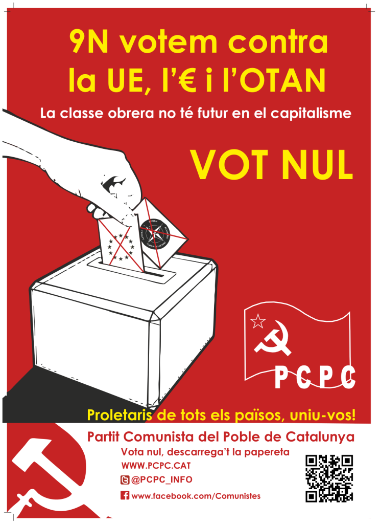 El Partit Comunista del Poble de Catalunya crida al conjunt de la classe obrera catalana i als sectors populars a acudir el proper dia 9 de novembre als centres de votació i a exercir el dret a vot. El PCPC crida a no posar-se darrera de la bandera de cap burgesia, ni la catalana, ni […]