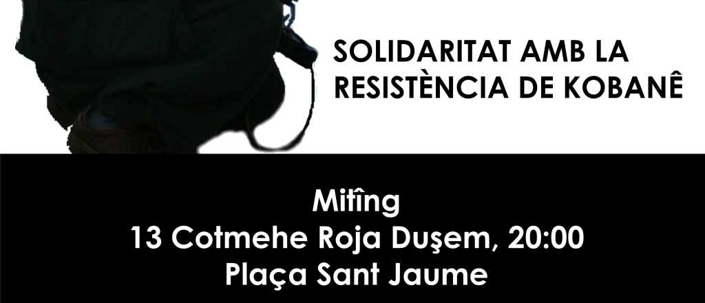 Concentració: Dilluns, 13 d’octubre a les 20h a Pl. Sant Jaume (Barcelona) Avui, els terroristes jihadistes ataquen Kobanê, amb el permís i supervisió de l’imperialisme. El poble de Kobanê està resistint heroicament i s’està defensant davant el terrorisme de l’Estat Islàmic. No és cap secret que l’Estat Islàmic, hagi estat creat, alimentat i utilitzat per […]